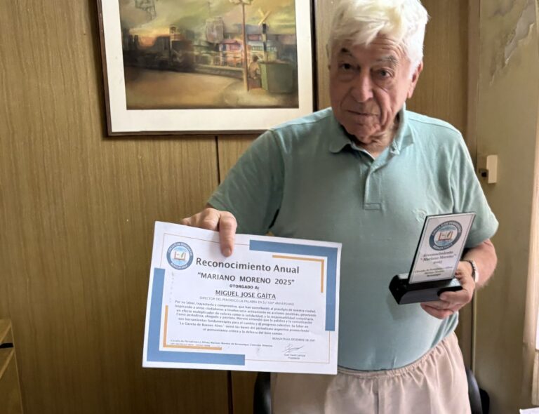 El Círculo de Periodistas y Afines “Mariano Moreno” de Berazategui distinguió este jueves por la mañana a Miguel  Gaíta, director del periódico La Palabra, en el marco de los Reconocimientos Mariano Moreno 2025.