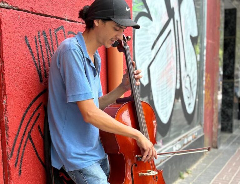 En pleno centro de Berazategui, el sonido del violonchelo sorprendió a quienes pasaban por la peatonal.